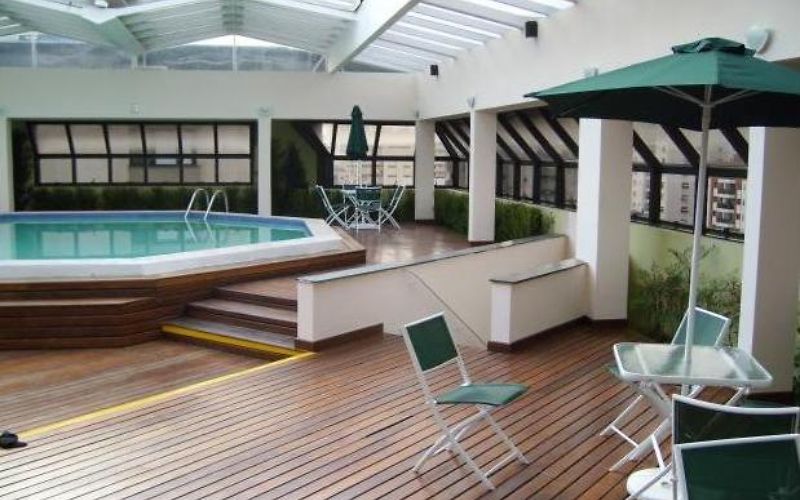 equipadas con piso laminado, cocina, TV LCD de 32, aire acondicionado, microondas y horno eléctrico. Servicios incluidos en el condominio: housekeeping (limpieza del apartamento cada día), mensajero, valet parking, tv por cable, seguridad, recepção24 hs, zona de ocio con piscina, sauna, gimnasio, jogging track, cancha de squash, gourmet (barbacoa);