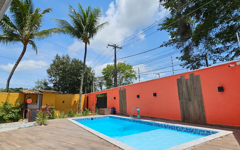 Varanda, 11 banheiros, churrasqueira, piscina, cozinha, jardim, redes, lar de actividade física.