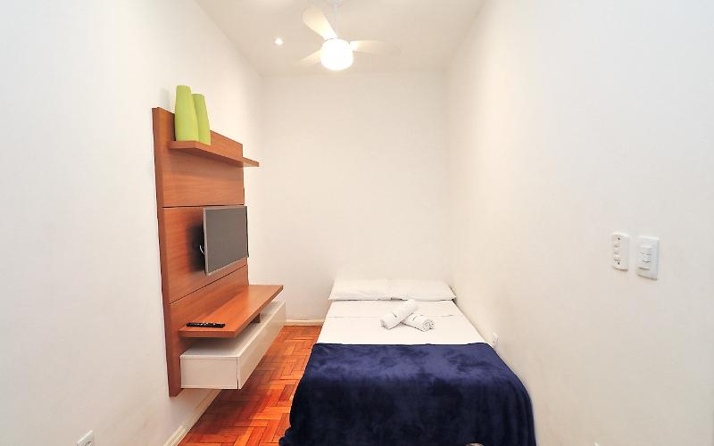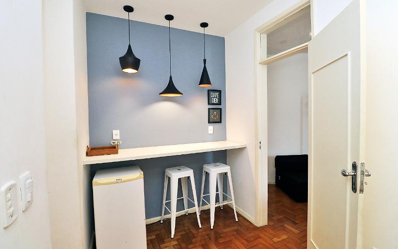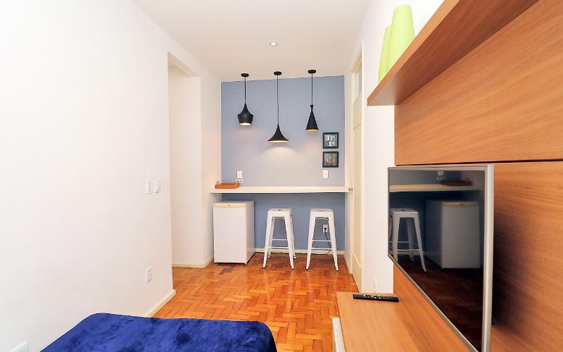 Apartamento para até 6 pessoas de 55m2 recém reformado, na quadra da praia, ande 50 metros e você está na areia da praia de Copacabana, dividido em quarto suíte, saleta, banheiro e cozinha. Cozinha completa sanduicheira, cafeteira, frigobar, fogão e microondas. Banheiro com chuveiro aquecido para seu maior conforto. Saleta com sofá-cama de casal confortável e Smart TV. Quarto composto de cama de casal, sofá-cama de casal, Smart TV e ar-condicionado. Internet Wi-Fi incluidos no preço.