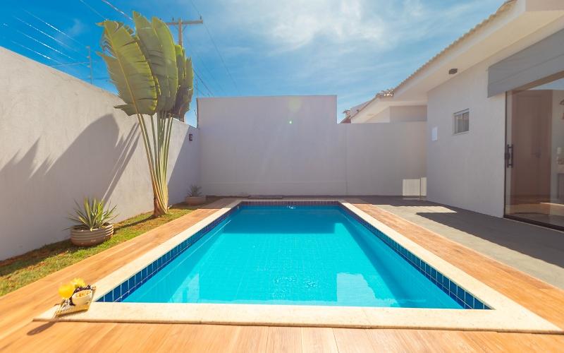 Se você procura conforto, lazer e segurança em Caldas Novas, esta casa em condomínio fechado é perfeita para sua estadia. Com portaria e sistema de segurança, oferece tranquilidade total. O destaque é a piscina privativa climatizada, ideal para relaxar, ao lado de uma área gourmet charmosa com churrasqueira, ideal para momentos especiais.