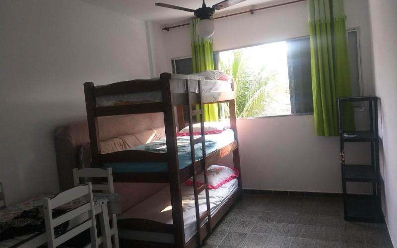 Dormitórios Flexíveis: O apê conta com 1 colchão de casal, 1 colchão de solteiro, 1 beliche e um confortável sofá-cama de casal na sala.