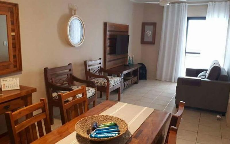 O apartamento está localizado à 50 metros da praia próximo ao mercado do Zezinho. Possui 2 dormitórios sendo 1 suíte e 1 banheiro social. Ar condicionado nos 2 quartos, além de ventiladores de teto na sala e nos quartos. Tv 32" na suite e Tv 40" na sala. Varanda gourmet, 1 vaga de garagem coberta. Cama queen size, 2 camas de solteiro com camas auxiliares. Acomoda 06 pessoas (incluindo crianças)