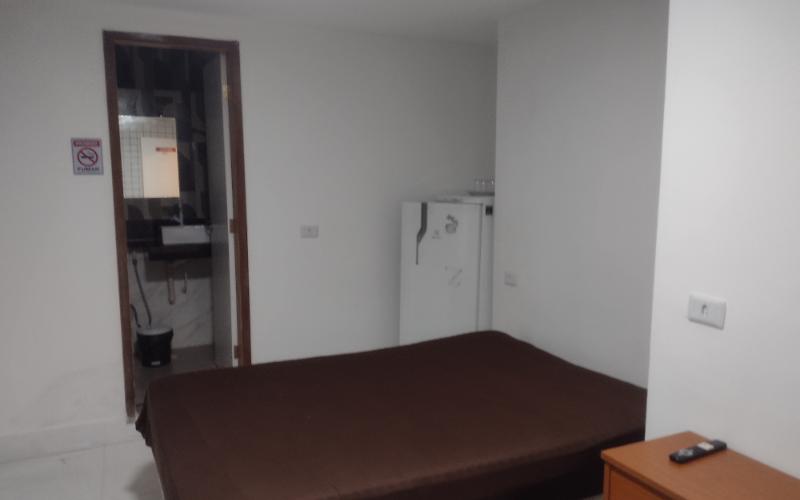 Um quarto com um banheiro, não tem garagem estacionar em frente ao prédio com ar condicionado e Wi-fi, geladeira , precisa trazer roupa de cama e banho, para até 4 pessoas , terceiro andar sem elevador a300 metros da praia grande Ubatuba reserva pode ser feito pelo site