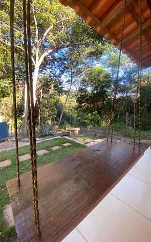 ? Varanda aconchegante com rede e balanço, perfeita para relaxar.
