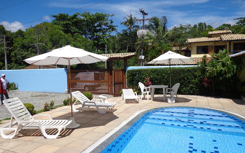Churrasqueira grande na piscina, e churrasqueira portátil pequena a disposição do cliente.
