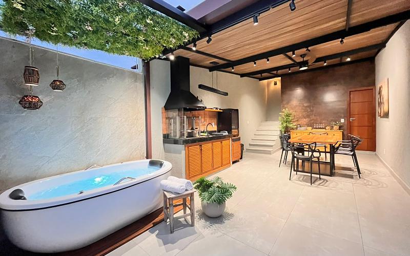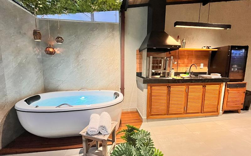 Churrasqueira, ofurô para 2 pessoas.